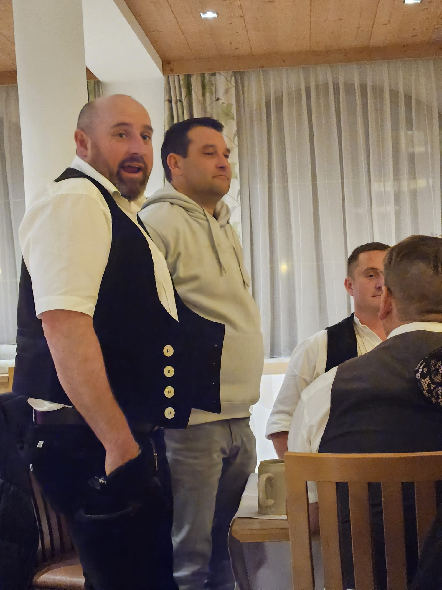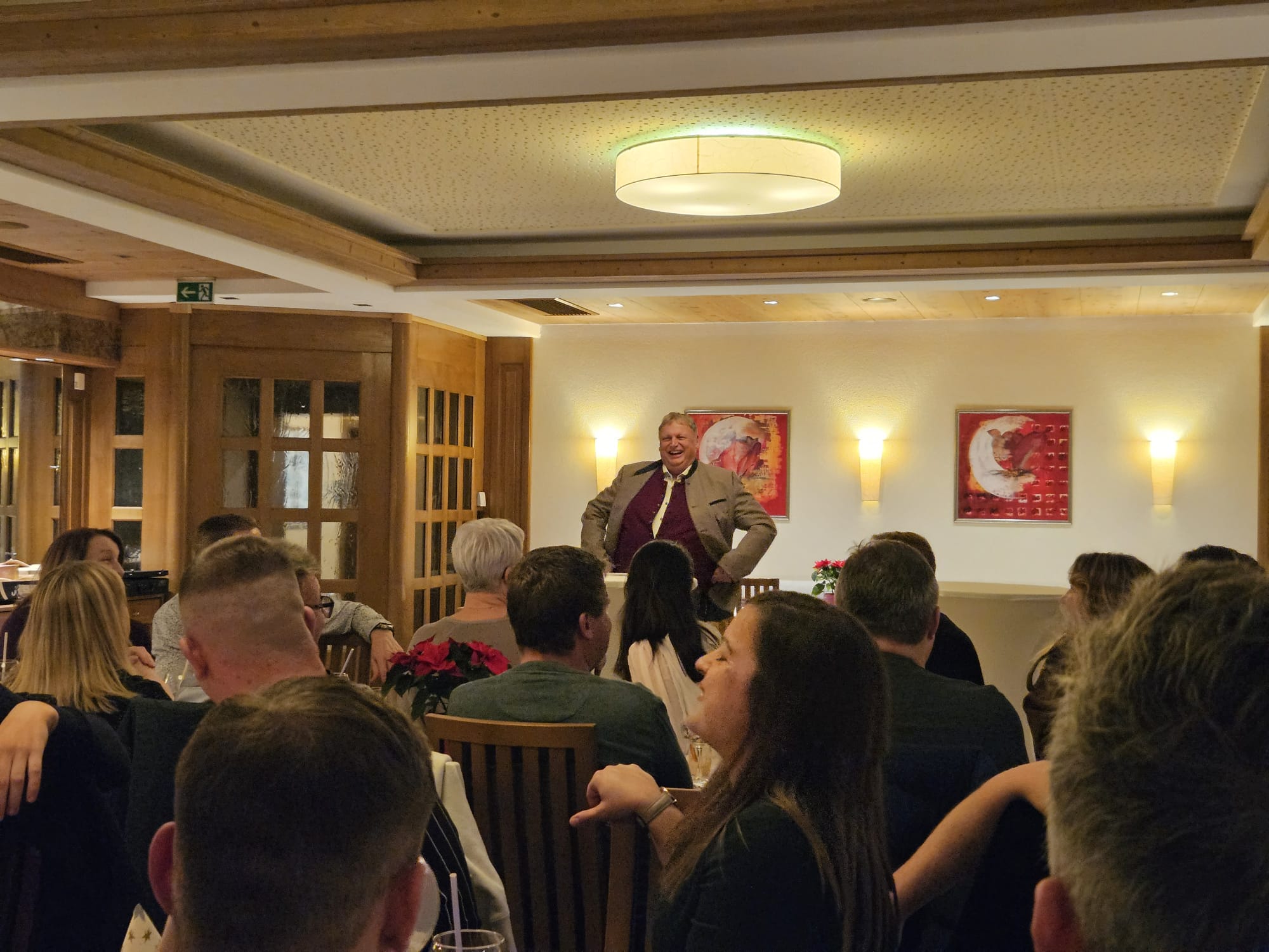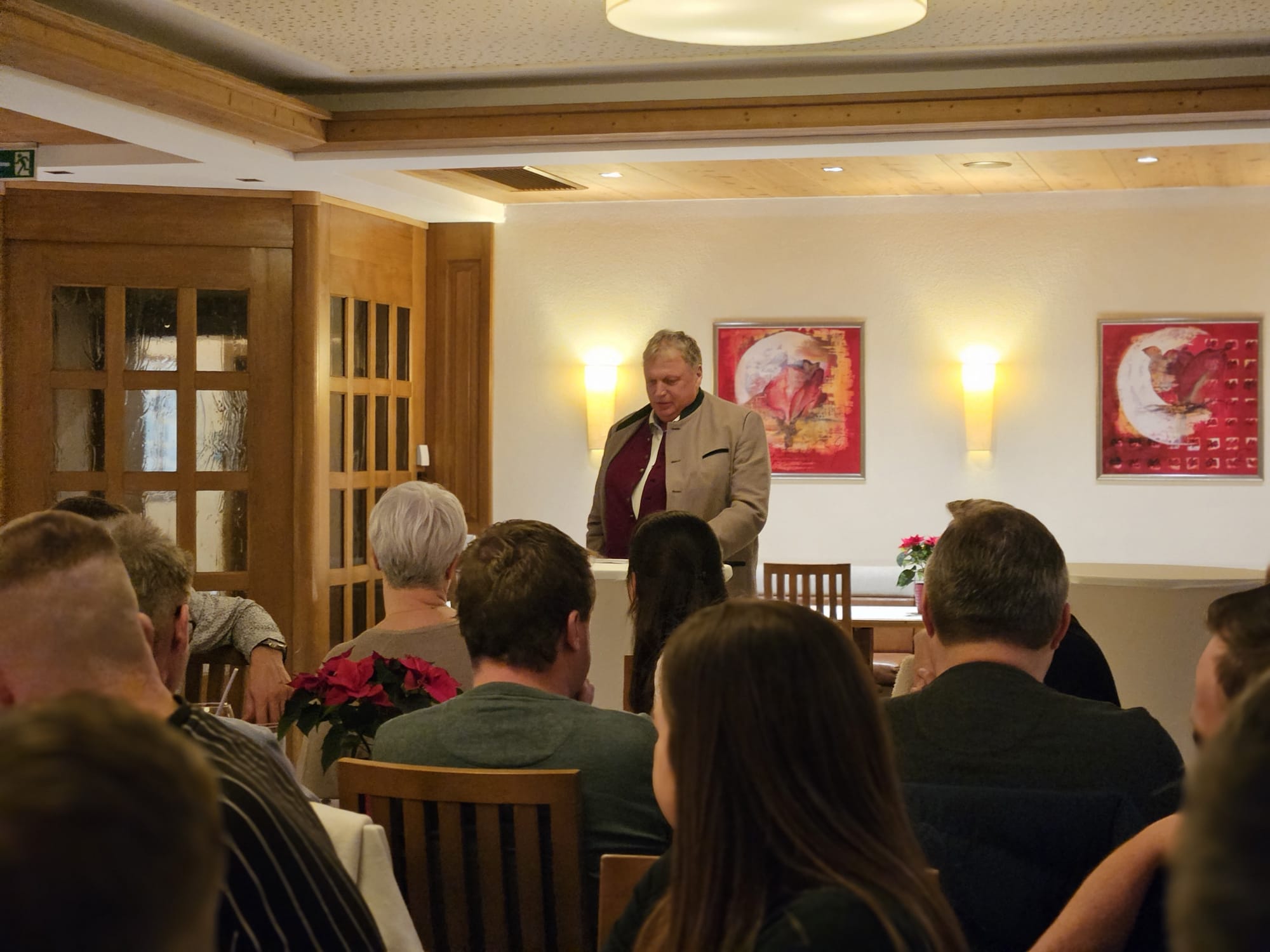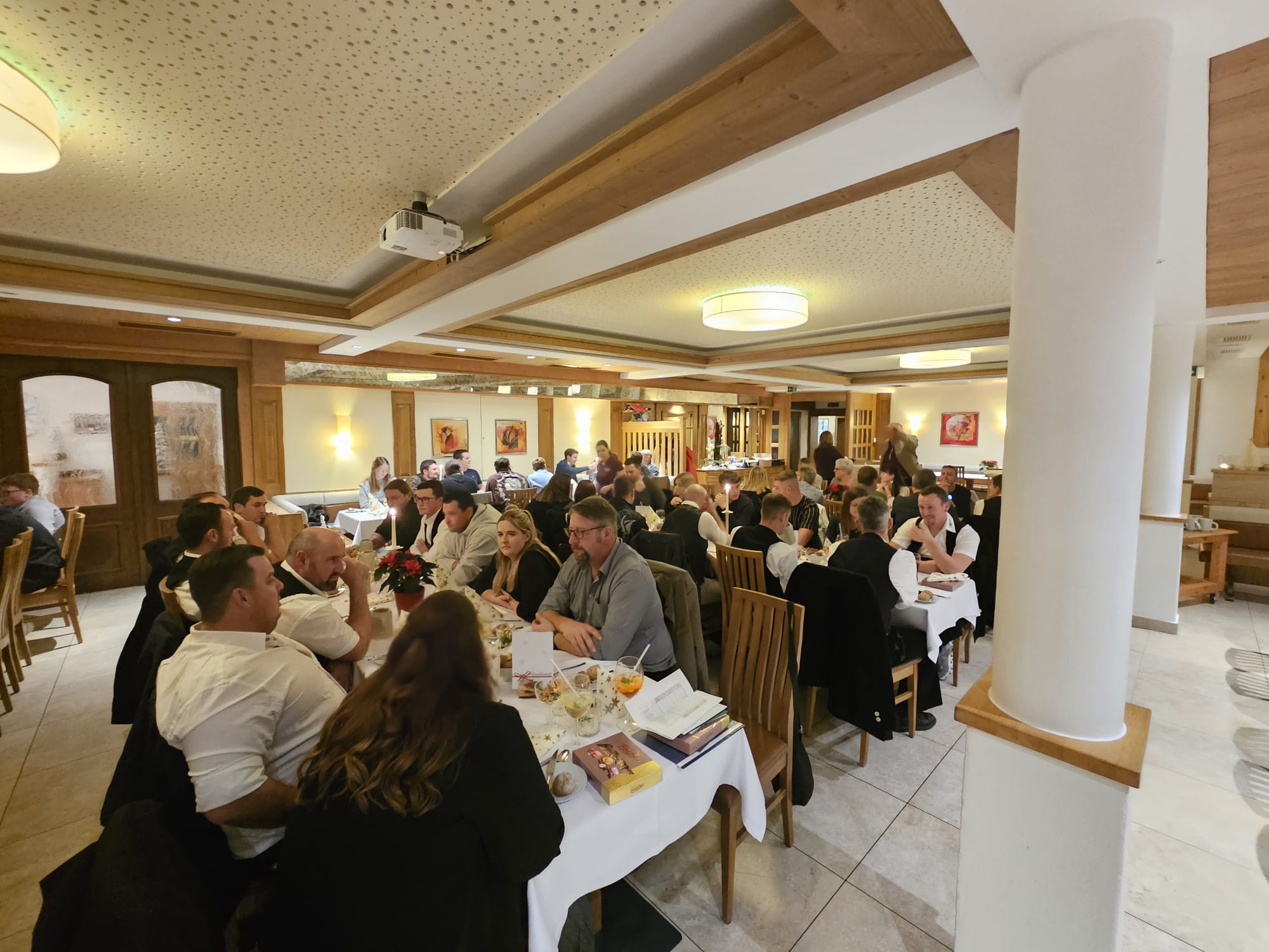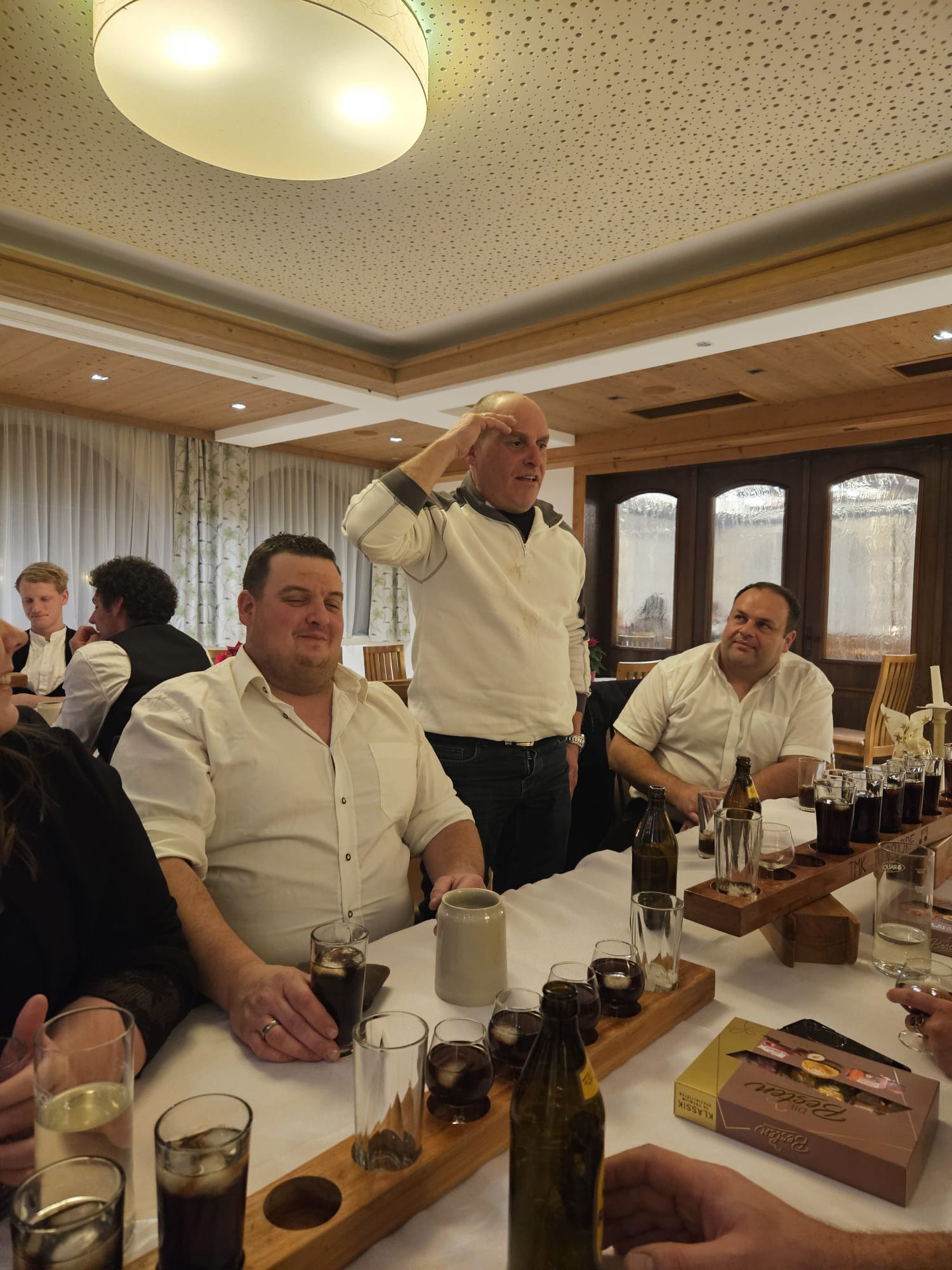 Nach einem Aperitif- und Augustiner aus dem Holzfass-Empfang begann unsere alljährliche Weihnachtsfeier im Gasthaus Brunner in Tarsdorf.