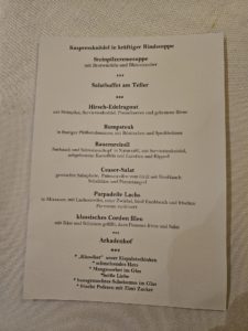 Im Anschluss wurden wir mit einem hervorragenden mehrgängigen Menü samt Getränken und Nachspeisen verköstigt.