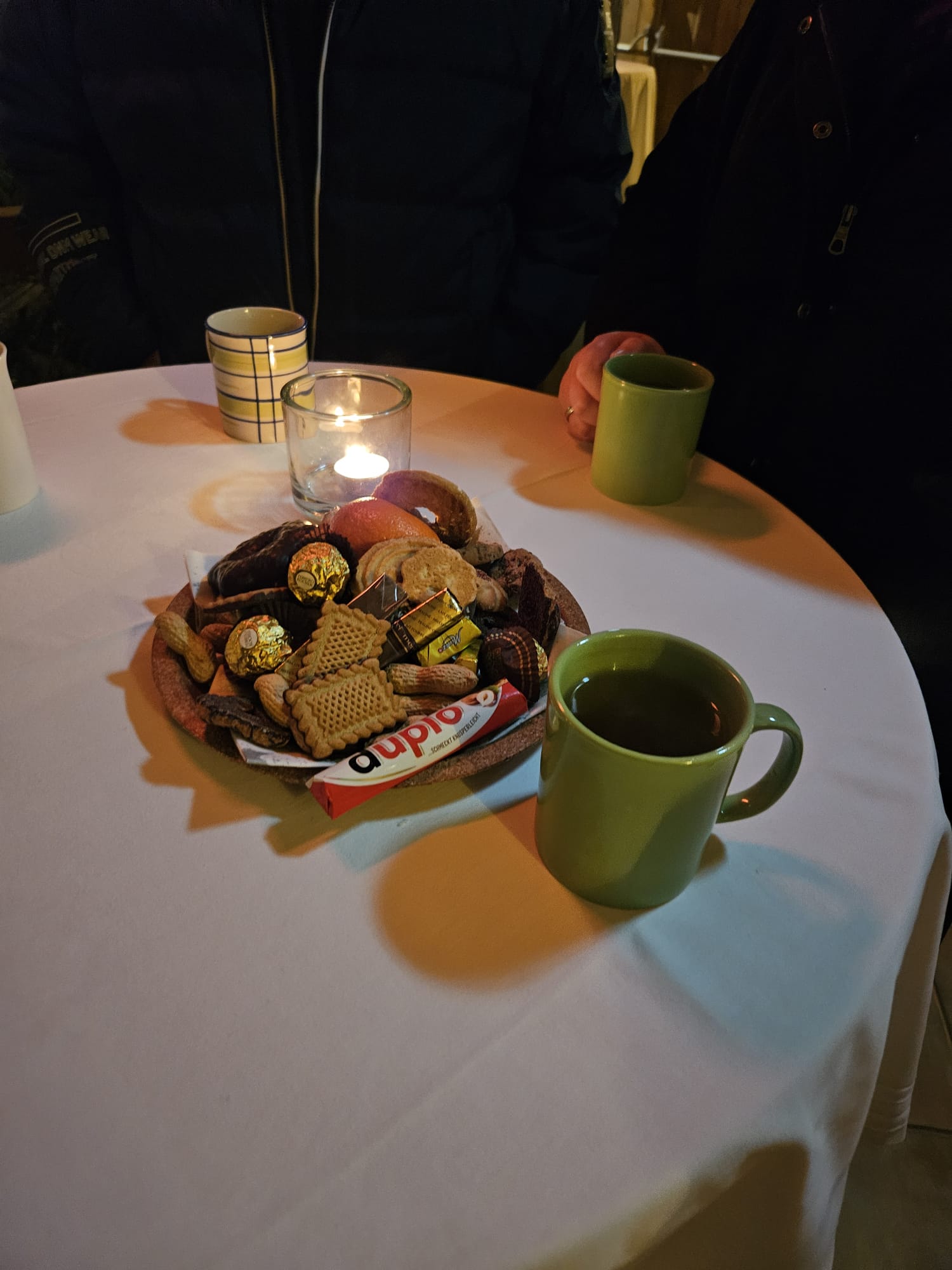 Im Arkadenhof ging es mit Glühwein, Glühmost, Punsch, Keksen und Schoki bei Kaminfeuer und weihnachtlicher Stimmung weiter.