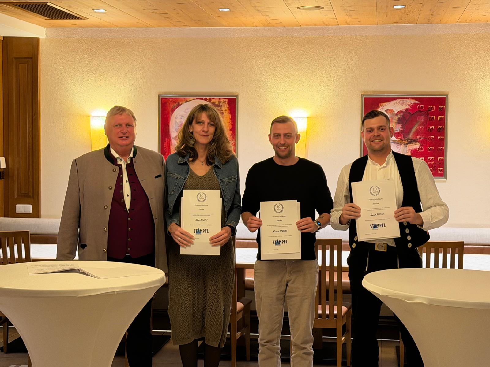 Nach der Begrüßung und ergreifenden Ansprache von unserem Chef wurden die Mitarbeiter Markus Strobl, Kocab Samuel und Kaupa Silvia zum 10jährigen Firmenjubiläum geehrt.